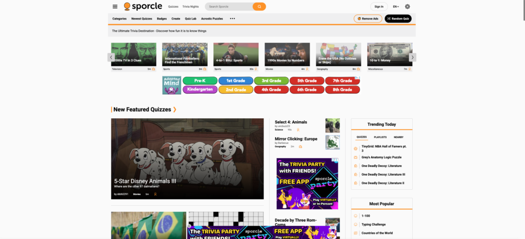 3. Sporcle – Interactive Trivia Challenges