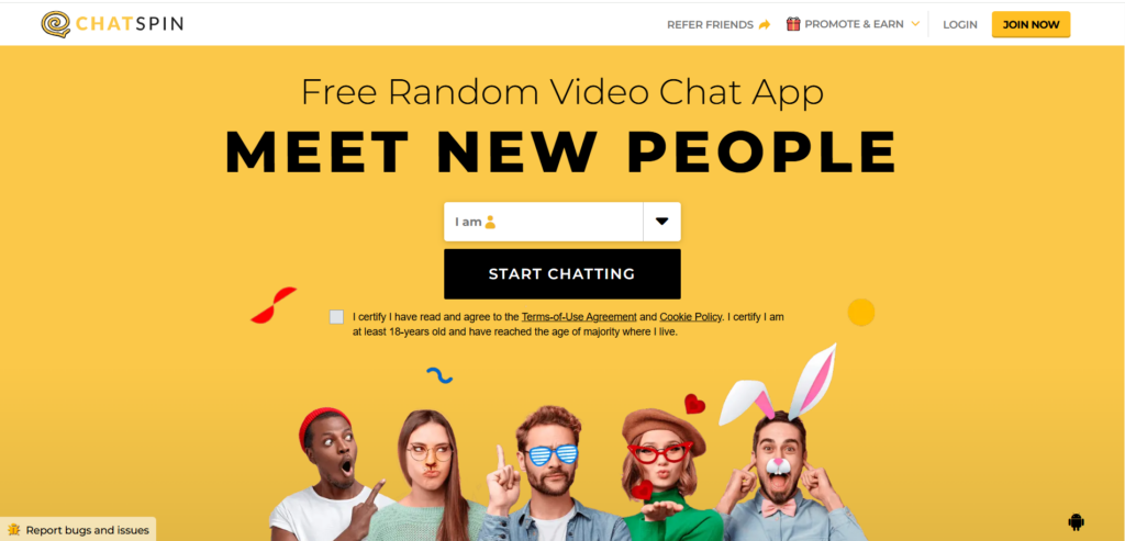 Chatspin excels at geographic filtering for country or city-specific matches. HD video quality prioritized. Face masks and filters provide privacy options.