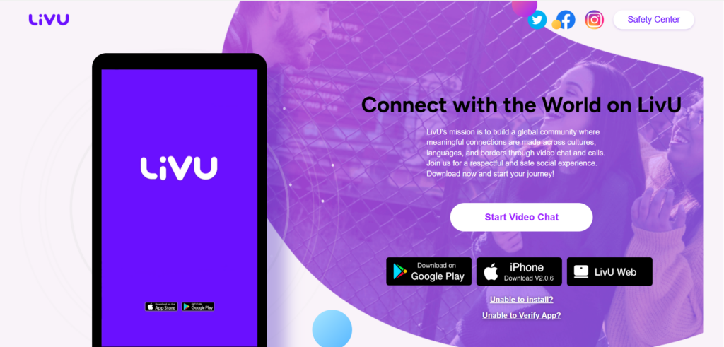 LivU offers mobile-optimized video chat with beauty filters and effects. Real-time translation supports international connections. Gender and location filters narrow matches.
